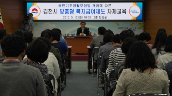 김천시(시장 박보생)는 국민기초생활보장법 개정에 따른 ‘맞춤형 복지급여제도’의 원활한 추진을 위해 지난 5월 12일 시청 2층 회의실에서 복지 업무 담당자 및 민간 보조인력에 대한 자체교육을 실시했다고 전했다.