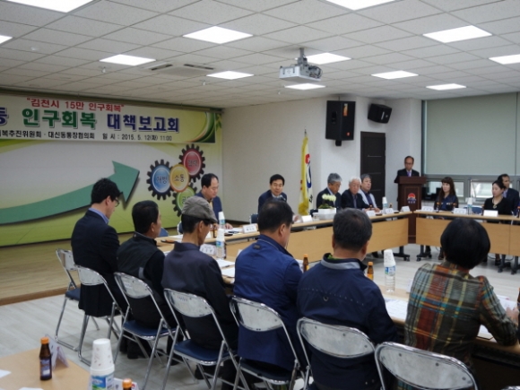 |  | | | ⓒ 김천내일신문 | | 김천시 대신동(동장 변성철)은 지난 5월 12일 정만복 부시장, 임병국 인구회복추진위원장 및 위원, 통장협의회장 이재성 등 80여명이 참석한 가운데 15만 인구 회복을 위한 인구대책보고회를 가졌다고 밝혔다.