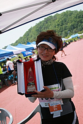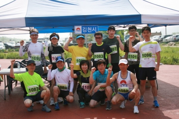 마라톤을 시작한지 3개월 후 보령임해 하프마라톤대회에 시청팀으로 처음 대회에 참가하여10km 50분19초로 예상보다 좋은 기록에 대하여 팀원들의 격려에 힘을 받았다는 것이다.
