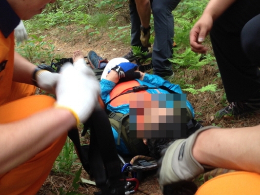 출동한 119구조 구급대는 김모씨의 응급처치 후 산악용 들것 이용 안전하게 하산 후 대기중이던 119구급차으로 신속히 병원으로 후송하였다.