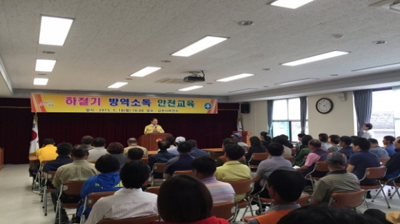 |  | | | ⓒ 김천내일신문 | | 김천시는 지난 5월 18일 감염병 없는 건강한 여름나기를 위해 보건소 3층 회의실에서 읍‧면․동 방역담당자 및 방역요원 등 70여명이 참석한 가운데 하절기 방역소독 안전교육을 실시했다고 전했다. 이번 방역소독 교육은 본격적인 방역소독에 앞서 국내 주요 질병매개모기의 특징, 모기방제방법, 방역 소독시 주의사항과 방역장비 사용법, 수리방법 등을 분야별 전문가를 초빙하여 친환경적이고 보다 체계적인 방역소독의 기초를 마련하였다.