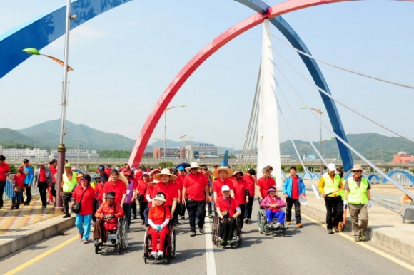 한편 초여름 날씨의 무더위 속에 진행된 걷기대회에서 박보생 김천시장은 삼락 다수간 도로를 이용한 왕복 3.4km 거리를 휠체어를 밀며 대회참가자들과 함께한 가운데 김천시 산악연맹회원을 비롯한 많은 분들의 자발적인 참여와 봉사활동으로 대회가 활기차고 순조롭게 마무리 되었다.