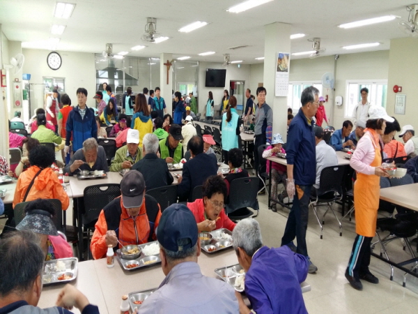 평화남산동 주민센터 직원들은 급식 배식 보조를 하면서 짧은 시간이나마 관내 독거노인과 따뜻한 대화의 기회를 가져 사랑 나눔을 실천하였다. 이날 봉사는 주방 설거지, 주방도구 소독, 급식소 내부를 구석구석 쓸고 닦으며 정리 정돈으로 마무리 하였다.
