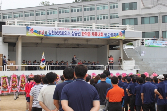 김정호 김천상의 회장은 대회사를 통해 “산업전선에서 불철주야 혼신의 노력을 기울이고 있는 상공인과 근로자 여러분들이 틈틈이 갈고 닦은 기량으로 소속사의 명예를 걸고 선의의 경쟁을 펼치게 된 것을 매우 뜻깊게 생각한다”며, “아무쪼록 기업체, 기관․단체간 임직원이 모처럼 한자리에 모인만큼 그간의 시름을 모두 잊고, 스포츠맨십을 발휘하여 친목과 우의를 돈독케하는 축제의 한마당이 되기를 바란다”고 말했다.