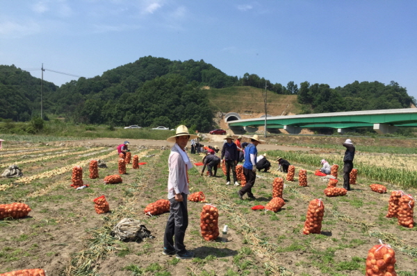 구성면 송죽리 양파밭에서 무더운 날씨에도 아랑곳 하지 않고 직원들은 양파수확에 구슬땀을 흘렸다. 농민 박창섭씨는 작년 양파 가격이 많이 떨어져서 어려움을 겪었고 올해는 수확 인력이 없어 걱정했는데 지원을 해 준 김천시청 직원들에게 감사하다고 전했다.