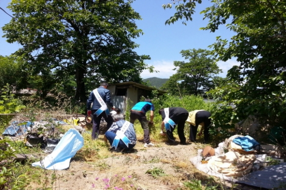 김천 대덕면·수도사업소 직원, 양파수확에 구슬땀