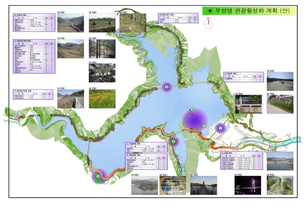 부항댐 관광자원화사업은 전국에서 가장 아름다운 댐으로 알려진 부항댐 일원에 총사업비 95억원(국비48, 도비5, 시비42)을 투자하여 국내 최장 길이의 출렁다리(250m), 야간경관 조명, 망향공원 등을 설치하여 관광객들에게 다양한 볼거리, 즐길 거리를 제공하게 된다.