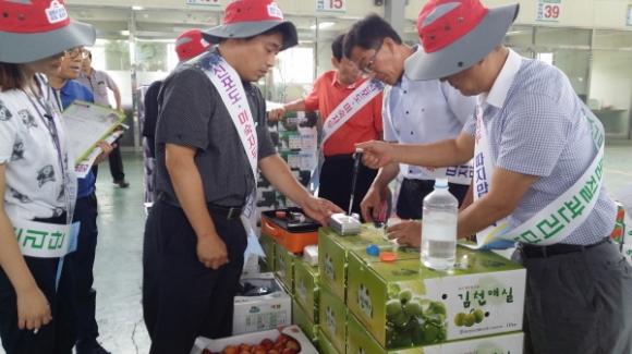이에 따라 행정, 김천시농협조합공동사업법인, 국립농산물품질관리원 김천사무소, 김천포도회, 김천자두회 , 새김천청과, 김천농협공판장 민관합동으로 구성된 점검반을 편성하여 김천시 농산물도매시장과 김천농협 공판장등을 대상으로 오는 8월 중순까지 지속적으로 점검할 예정이다.