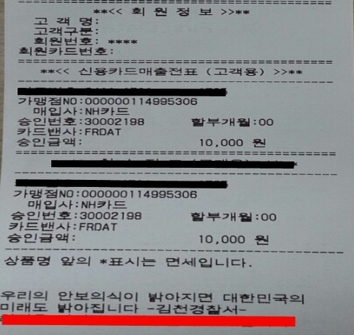 이번 주유소 영수증에 게재되는 안보홍보용 문구는 지난 경찰청 에서 실시한 안보홍보 콘테스트 우수작을 엄선한 것으로 주유소를 이용하는 고객들에게 이용될 경우 안보 홍보 효과는 극대화가 될 전망이다.