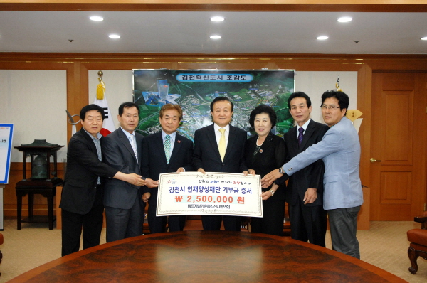 김천의 교육발전을 위해 바르게살기운동 김천시협의회(회장 김용희)에서 힘을 모아 김천시인재양성재단(이사장 박보생)에 장학기금 2백5십만원을 기탁했다.