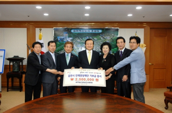 이날 2층 접견실에서 김용희 바르게살기운동 김천시협의회 회장은 “김천의 미래는 교육에 의해 좌지우지 되며, 우수한 인재육성에 조금이나마 보탬이 되고자 십시일반으로 김천시인재양성재단에 2백5십만원을 기탁하게 됐다고 말했다.