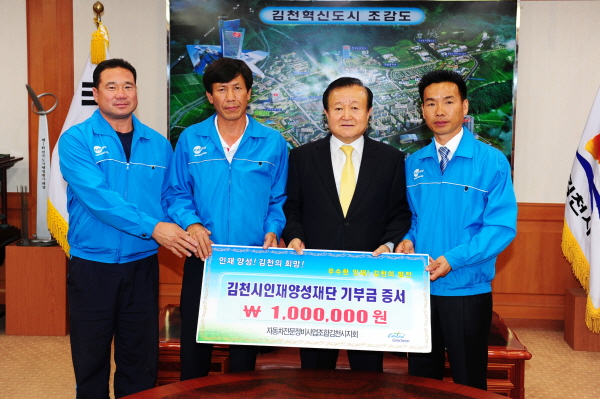 김천의 교육발전과 글로벌 인재육성을 위해 자동차 전문정비사업조합 김천시지회(지회장 이봉두)에서 지난6월 11일 시인재양성재단(이사장 박보생)에 장학기금 1백만원을 기탁했다.
