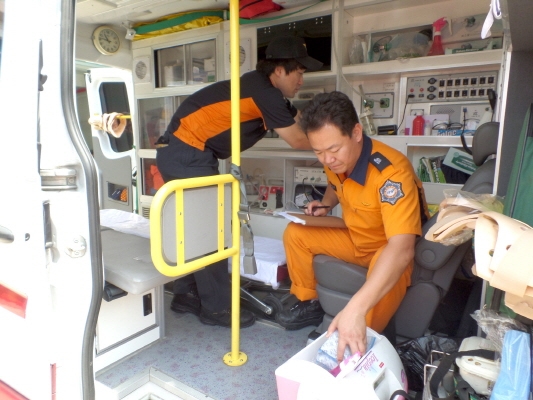 김천소방서는 구급대원을 대상으로 온열손상관련 특별구급교육을 실시했으며, 구급차 냉방장치 정비 및 얼음조끼, 정맥주사세트, 구강용 전해질 용액 등 폭염관련 구급장비는 총9종 517점을 배치 완료했다.
