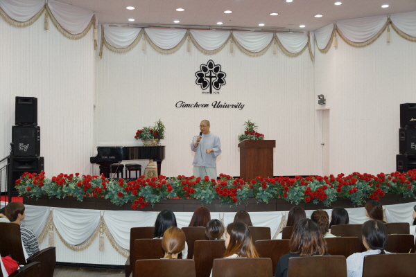 김천경찰서(서장 김훈찬)은 지난6월12일 김천대학교 제1보건과학관 강당에서 음악과 학생 60명을 대상으로 여성긴급전화 1366 경북센터장 진원스님을 초청하여 성폭력 예방교육을 실시하였다.