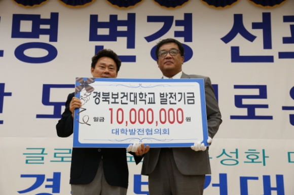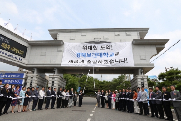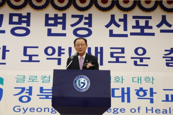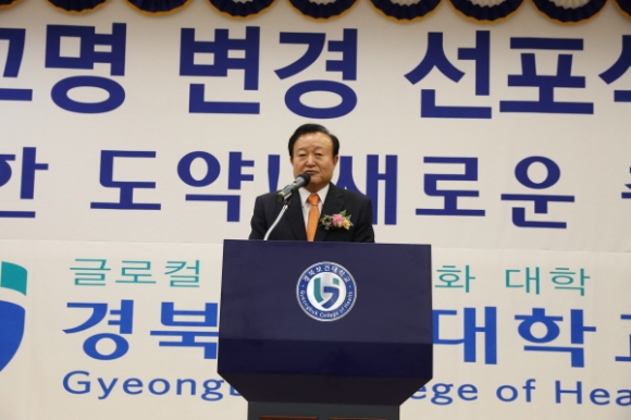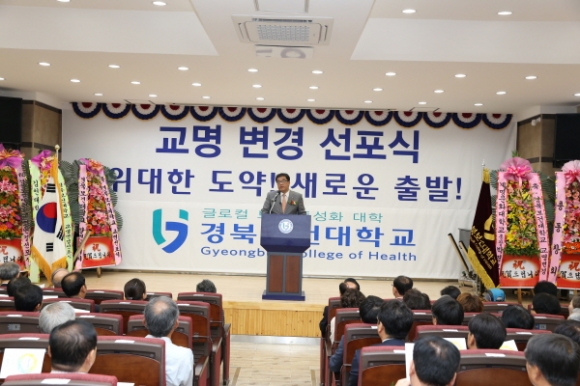이은직 총장은 환영사를 통해 “간호학과를 모체로 개교한 대학의 역사와 교육부 주관의 ‘보건산업분야 특성화 전문대학’ 선정, 대학의 미래 방향성 등에 부합하는 ‘경북보건대학교’로 교명을 변경하게 되었다”며, “교명 변경을 계기로 대학 중장기 발전계획인 GCH VISION 2020, 전국 전문대학 20위권 경쟁력 대학으로 목표 달성을 위해 최선의 노력을 다하겠다”고 말했다.