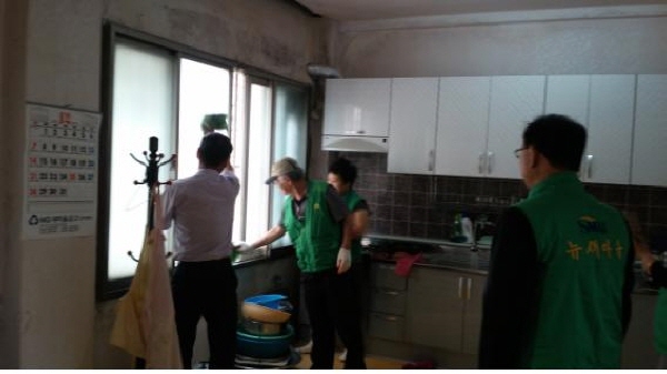 |  | | | ⓒ 김천내일신문 | | 김천시 자산동(동장 류장한)에서는 지난 6월18일 자산동 남녀새마을지도자협의회(협의회장 김정우, 부녀회장 조선희)회장 및 회원 10여명은 더운 날씨 에도 불구하고 한창 발병중인 메르스 및 각종 질병 예방 등 청결한 생활을 위해 자산경로당, 성내경로당 2개 마을의 경로당을 방문하여 경로당 안팎, 창틀, 천장, 바닥까지 세밀히 세척하고 방역작업을 하였다.