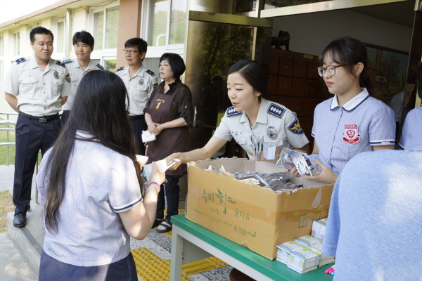김천경찰서(서장 김훈찬) 여성청소년과에서는 6월19일 한일여자중학교를 방문하여 학교폭력 예방을 위한 「등굣길 친구사랑 캠페인」을 실시하여 호응을 받았다.