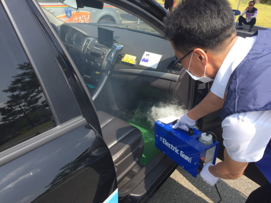 김천시(시장 박보생)는 지난 19일 현대자동차 김천지점의 후원으로 개인택시김천시지부 소속차량(319대) 전체를 대상으로 차량 방역 및 소독을 실시했다.