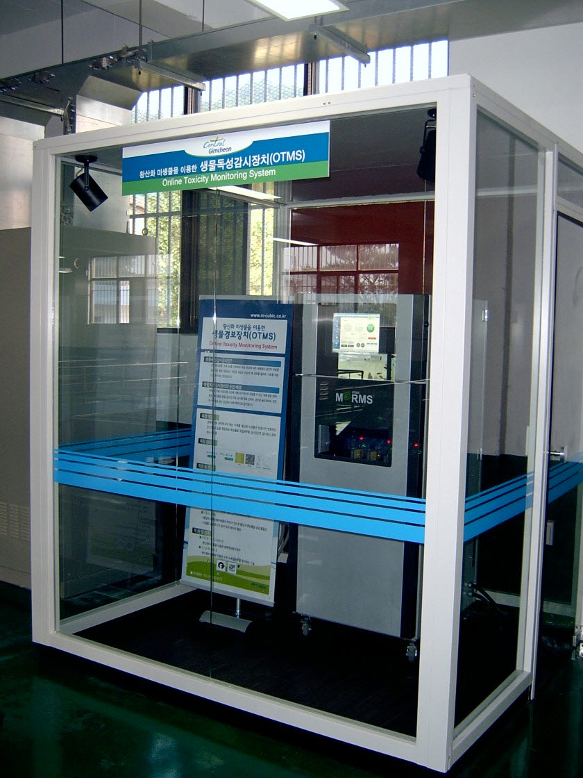 이 장치는 실시간 수질감시가 가능하며, 유해물질이 유입되면 미생물 반응에 의해 감지가 되어, 경보장치가 자동으로 울려 수질상태를 즉각 알려주는 시스템이다.
