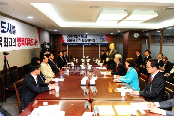 시 승격 반세기의 역사적 대형사업이자 김천발전의 견인차가 될 김천혁신도시 조성은 인구증가와 고용창출, 주택건설 촉진, 정주여건 개선, 지방세 증가 등 연간 1조원의 경제적 유발효과가 기대되고 있습니다. 우리 김천은 새로운 기회의 땅으로 미래 투자가치가 높고 경쟁력 있는 명품도시로 거듭나고 있습니다. 공공기관과 지역연계 사업을 구상하고 인근지역과의 동반성장을 도모해 나가기 위해 혁신도시 창조협력(드림모아) 프로젝트를 미래전략과제로 추진해 나감으로써 국가균형발전의 거점지역으로서 경북 서부권의 발전을 선도해 나가겠습니다.