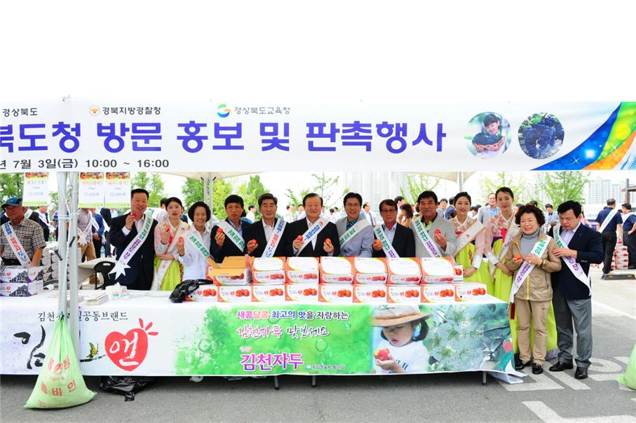 이날 행사는 메르스와 가뭄으로 인한 경기침체로 농민들이 앓고 있는 시름을 덜어 주고, 김천 포도·자두의 우수성을 널리 알리고자 하는 뜻 깊은 행사로 김천시장, 나기보.배영애 경북도의원, 박희주.백성철.박근혜시의원, 이석하 농협중앙회김천시지부장, 김천포도회, 김천자두연합회과 김재광 경북도향우회장을 비롯한 회원 30여명을 비롯하여 시청공무원 70여명이 홍보 및 판촉행사에 참여하여 김천시와 경북도간의 우의를 다지는 계기가 되었다.