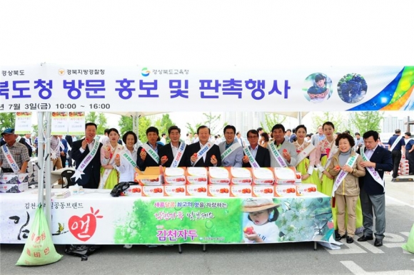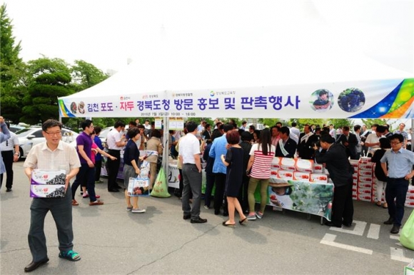 이에 도청직원들도 김천지역 농민들과 아픔을 함께 나누기 위해 김천포도자두 판촉행사에 적극 참여했다. 도청직원들이 사전주문 및 현지 판매량이 포도 450/2kg상자, 자두 400상자/3kg, 자두 200상자/5kg 등 2,000만원이 넘는 판매고를 올렸으며, 또한 현장 추가 주문이 자두, 포도 등 150상자에 이르는 명품 김천포도․자두를 실감하는 하루 행사가 되었다.