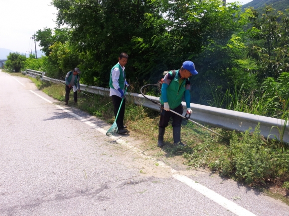 지난 7월 4일 새벽 5시부터 실시된 연도변 풀베기 및 환경정비는 새마을협의회 회원 40여명이 참석한 가운데 삼락동 경계에서 광천리 구간 12km를 정비하여 연도변을 지나는 운전자들의 탁트인 시야확보 및 깨끗하고 쾌적한 봉산면 만들기에 구슬땀을 흘렸다.
