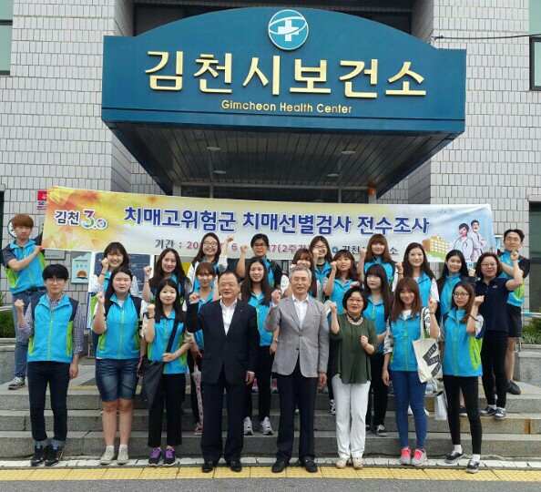 전수조사 대상 동지역 2,138명은 치매검진사 교육을 받은 김천대학교, 경북보건대학교 간호학생 20명이 읍·면지역 3,448명은 보건지소와 보건진료소에서 전담 실시하고 직접 가정을 방문하여 치매선별검사 및 치매예방교육, 치매홍보물 배부 등을 하고 있다.