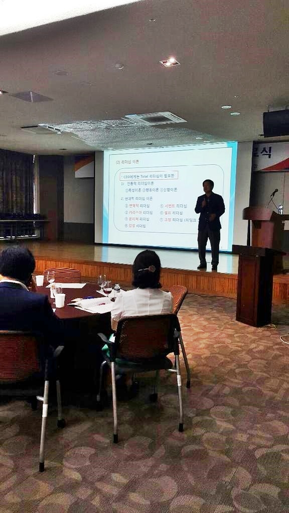훌륭한 CEO가 되기 위해서는 평소에 지(知)·덕(德)·체(體)·인(人)·언(言)의 다섯 가지 덕목과 내공을 잘 쌓아야 한다고 강조했다. 또 중소기업을 중견기업으로 발전시키기 위해서는 CEO가 3가지 리더십, 즉 ①직원들과 잘 소통하고(소통 리더십) ②윤리적 경영으로(윤리 리더십) ③기술 혁신을 하며(혁신 리더십) ④평소에 고객만족경영을 실천해야 중견기업으로 성장시킬 수 있다고 주장했다. 아울러 지난날 자신의 성공담과 카리스마를 함양하는 방법 및 운을 불어오는 비법을 제시해 많은 박수를 받았다.