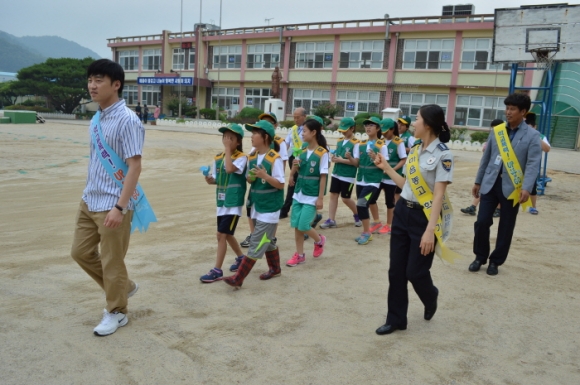 |  | | | ⓒ 김천내일신문 | | 김천경찰서(서장 김훈찬)에서는 7월 7일 오전 태화초등학교에서 학교전담경찰관과 선생님 및 명예경찰소년단 12명 등이 참석하여 교문에서부터 운동장, 교실, 복도 등에 대한 교내 합동순찰을 실시했다고 밝혔다. 이날 실시한 합동순찰은 학교전담경찰관들이 명예경찰소년단․학교자치순찰대 등과 함께하는 현장중심 활동을 통해 교육현장의 학교 폭력 자정능력 제고를 위해 마련한 것으로 상당한 호응을 받고 있다.
