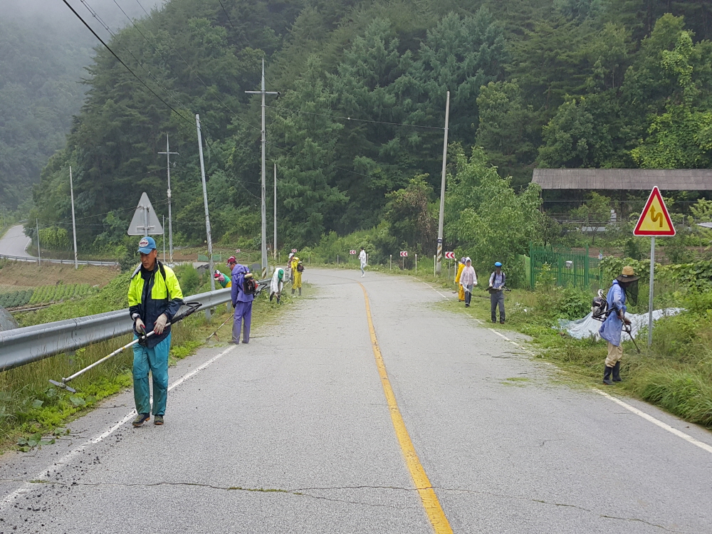 부항면새마을협의회, 도로변 환경정비에 구슬땀