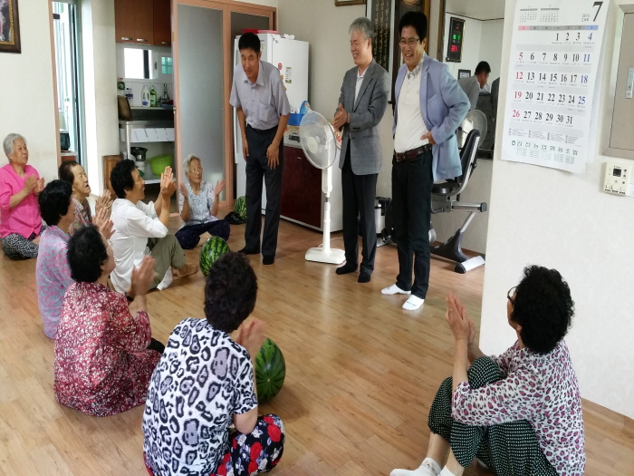 아울러 물과 과일을 자주 섭취하도록 설명하고 무더운 여름 어르신들께서는 건강관리에 더욱 더 유념하시기 바란다며 여름나기를 당부드렸다 . 이에 어르신들은 바쁜 일상을 뒤로 한 채 직접 경로당을 찾아 일일이 안부를 살핀 동장과 시의원들에게 감사의 인사를 전했으며, 앞으로도 지속적으로 지역 주민을 위해 관심을 가져달라고 당부했다.