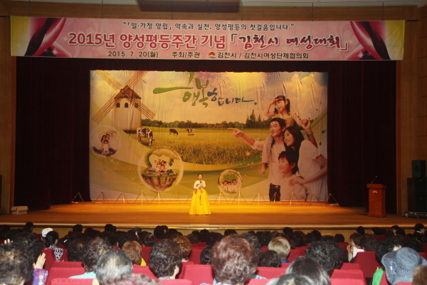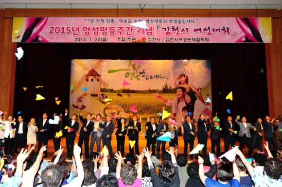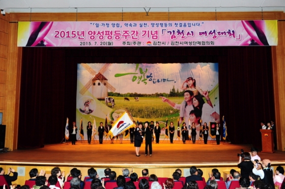 김천시는 7월 20일 오후 1시30분 김천문화예술회관 대공연장에서 여성단체 회원과 일반시민 1,000여명이 참석하는 2015년 양성평등주간 기념 ‘김천시 여성대회’를 개최했다.