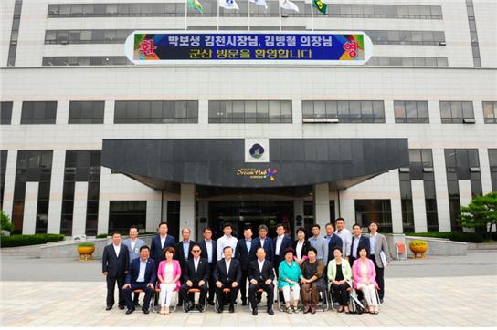 김천시(시장 박보생)는 7월21일 자매도시 군산시청에서 깨끗한 물과 공기를 먹고 천혜의 자연환경 김천에서 자란 김천포도·자두 홍보 및 판촉행사를 개최하였다. 우리시 대표 과일인 포도‧자두의 홍보와 지역 농산물의 안정적인 판로 개척과 소비자 인지도 제고를 위해 매년 행사를 진행하고 있다.