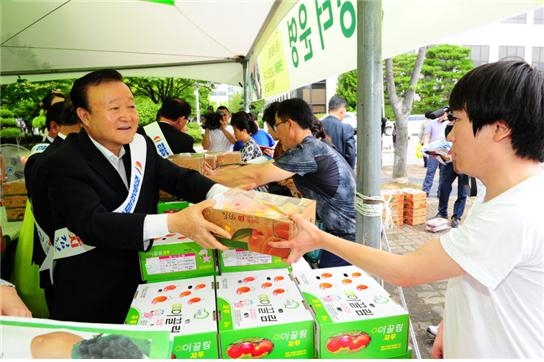 포도(거봉, 캠벨 등)가 900상자 1천2백만원 그리고 자두(후무사)가 1,230상자(1kg, 3kg, 5kg) 2천만원과 복숭아․참외등 사전주문 포함해 4천만원의 판매수익을 올려 역대 행사중 최고의 실적을 거양했다.