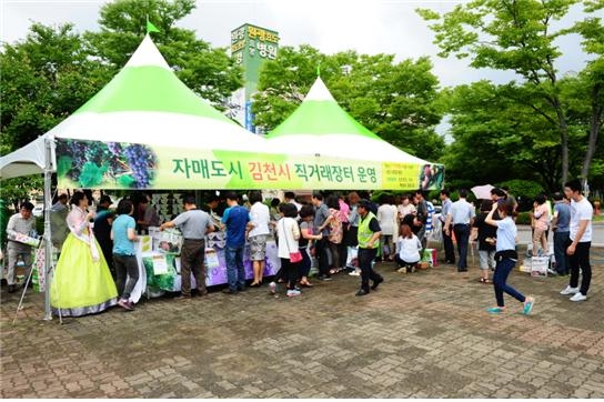 김천시는 전년도 2,500상자 준비하였지만 행사시작과 동시에 전량 판매되어 군산시민들로부터 많은 아쉬움을 남긴바 있다. 올해는 지난해보다 20% 많은 3,000상자를 준비 하였지만 비가 내리는 궂은 날씨에도 불구하고 행사가 시작되기가 무섭게 준비해 간 물량이 모두 팔려 김천포도, 자두, 복숭아등의 인기를 실감했다.