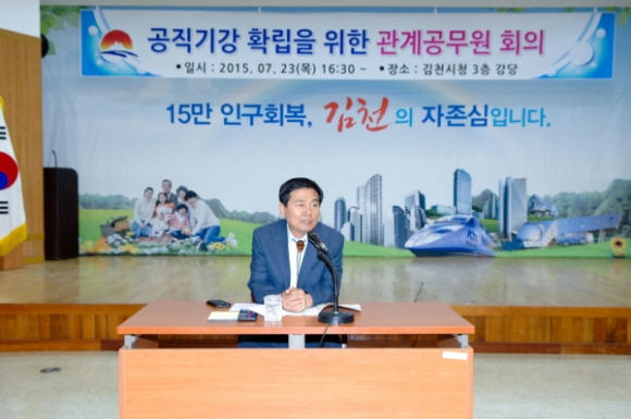 김천시(시장 박보생)는 지난7월23일 시청 3층 강당에서 직원 정기인사와 하계 휴가철 등의 어수선한 분위기에 편승한 공직자들의 근무기강 해이와 직무태만, 근거없는 각종 유언비어의 난무, 업무공백 및 불친절로 인한 민원발생, 직무관련자들로부터의 금품·향응 수수 등을 사전 차단하고 시민으로부터 신뢰받는 공직풍토 조성을 위한 관계공무원 연석회의를 개최하는 등 공직기강 확립과 공직분위기 쇄신을 위한 전방위적 대처에 나섰다.