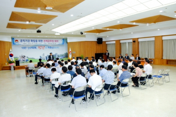 오는 8월 31일까지 전 공직자를 대상으로 실시되고 있는 하계 휴가철 공직기강 특별감찰 활동과 더불어 개최된 이번 연석회의에서는 실과소 서무계장과 읍면동 부읍면장 및 총무계장을 소집하여 끊이지 않는 공무원의 음주운전 근절과 복무기강 확립을 위해 공직자 스스로가 적극 노력해 줄 것을 다시 한번 강조했다.