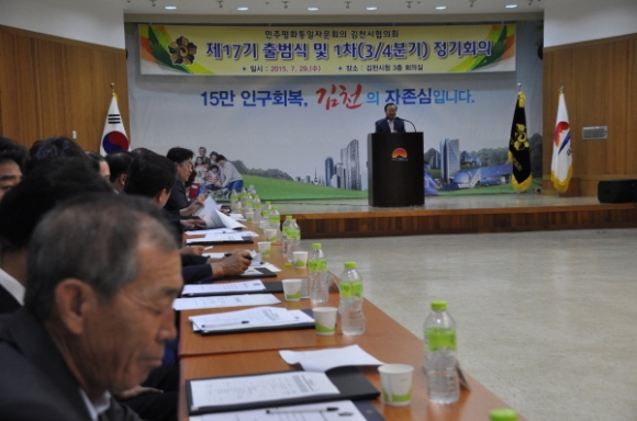 민주평통자문회의 김천시 협의회(회장 최용남)는 7월29일 김천시청 3층 회의실에서 제17기 출범식 및 1차정기회의를 개최했다.