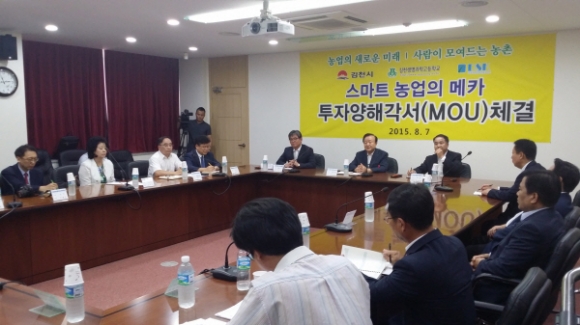 김천시(시장 박보생)는 8월7일 업기술센터(세미나실)에서 박보생 김천시장과 DSK엔지니어링(대표 김응교), 김천생명과학고(교감 김세경) 관계자가 참석한 가운데 스마트팜 설치운영의