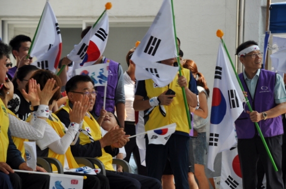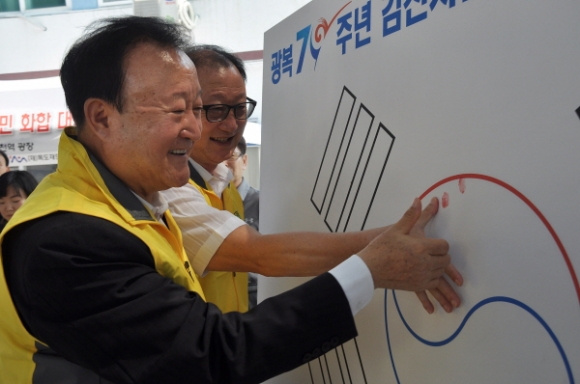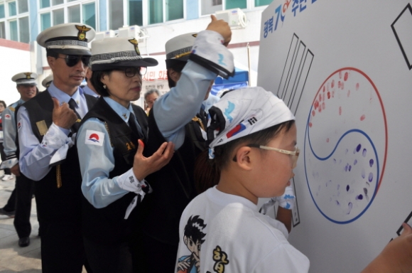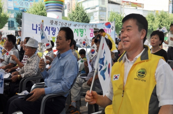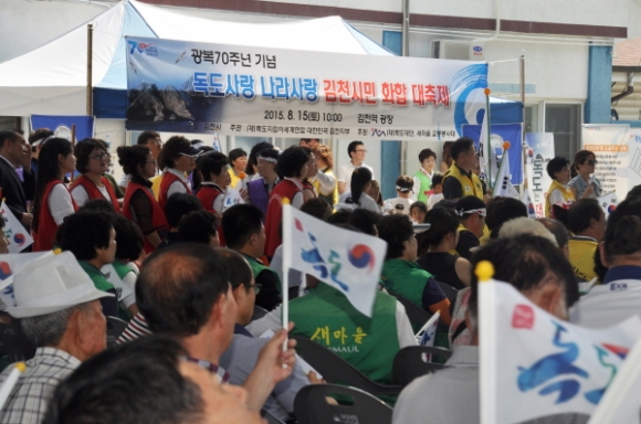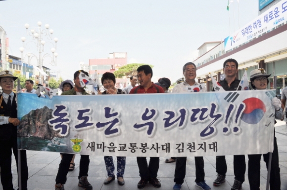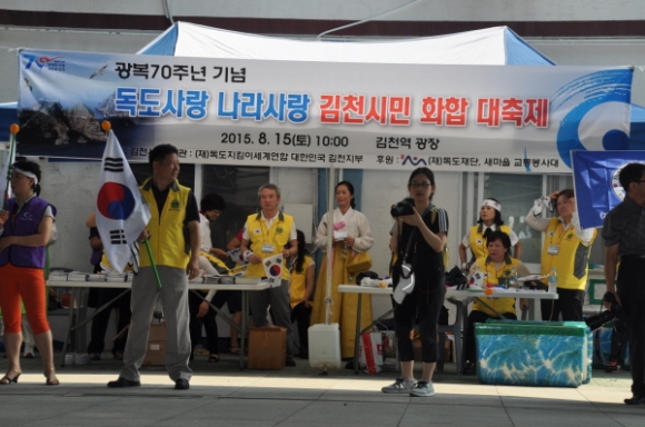 (재)독도지킴이 한국본부 김천지부(회장 박상도)는 8월15일 광복70주년을 맞아 김천역광장에서 회원및 시민 200여명이 참석한 가운데 “독도사랑 나라사랑 태극기 달기 켐페인”을 펼쳤다.