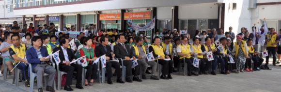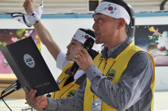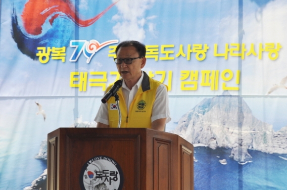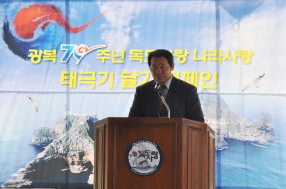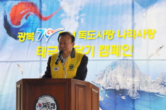 박상도 지부장은 대회사를 통하여 광복70주년 기념을 맞이하여 범 국민적 행사로서 많은 태극기를 달아 나라사랑 독도사랑의 분위기를 한층 더 고조시켜 광복70주년을 뜻 깊게 새기자고 말하고 시민과 내빈들의 참석에 많은 감사를 드리며 앞으로 시민과 함께 독도 지키기 운동을 지속적으로 펼쳐 나갈 계획이라고 덧붙였다.