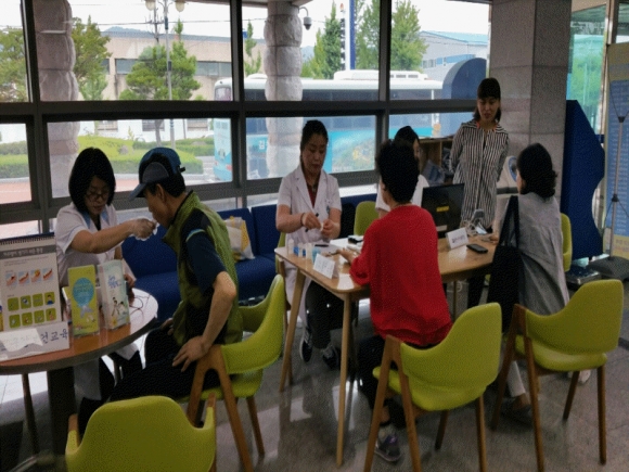 ‘함께해요 지역건강 누려요 평생건강’사업은 5월 ~ 8월에 걸쳐 시행되었으며, 혈압·혈당·콜레스테롤 검사 및 혈관나이 측정, 구강검진 및 구강보건교육을 함께 시행하는 사업이다.