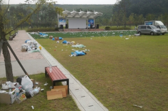 행사장 일원에는 참석한 시민들이 버리고 간 쓰레기로 행사장 주변 잔디밭은 몸살을 알았다.