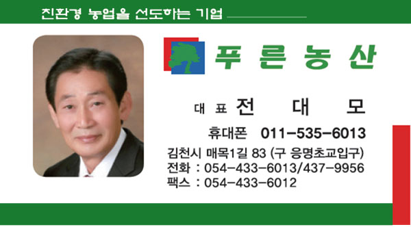 “유기질 비료에 대한 집착과 신뢰를 목숨처럼 여기며 산다”는 전씨의 이같은 열정 덕에 ‘푸른농산’ 문을 연지 2년여 남짓 만에 김천지역 대부분의 농협에 유기질 비료를 납품하는 성과를 올릴 수 있었다.