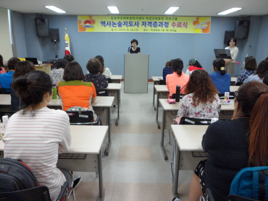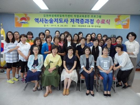 김천시(시장 박보생) 여성새로일하기센터는 지난 8월26일 여성회관에서 직업교육훈련 프로그램으로 실시한 “역사논술지도사 양성과정” 수료식을 개최했다.