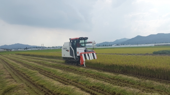 이날 벼 수확은 감문면 덕남리 김덕수씨 농가로서 면적은 2.4ha로 품종은 조생종 ‘설레미’로 오늘부터 본격적으로 수확에 들어갔다.