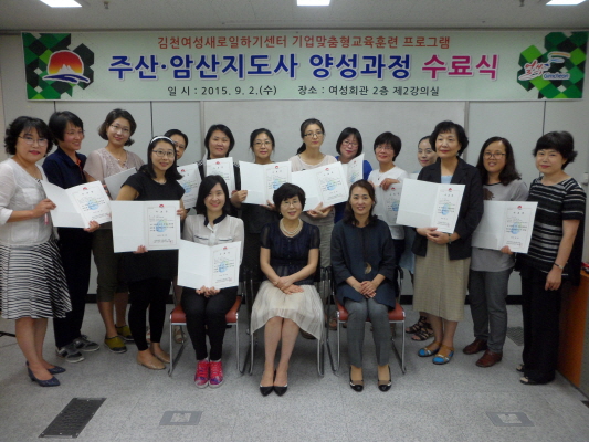 김천시 종합사회복지관내 여성새로일하기센터에서는 지난9월2일 여성회관에서 “주산‧암산지도사 양성과정” 수료식을 가졌다.