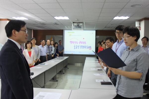 국민건강보험공단 김천지사(지사장 강현진)는 지난 9월7일 회의실에서 전 직원이 참석한 가운데 '평생건강, 국민행복, 글로벌 건강보장 리더'라는 뉴 비전 및 미래전략의 실천을 다짐하는 결의대회를 개최했다.