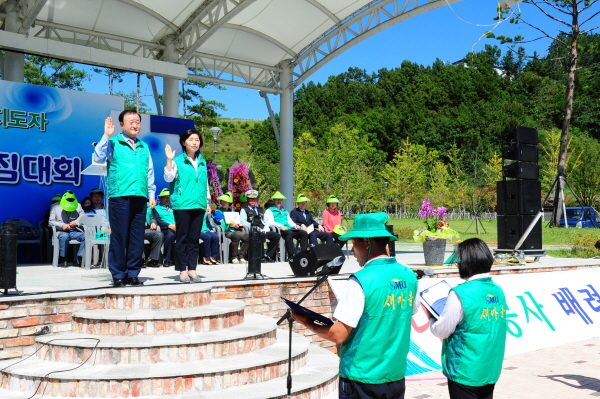 김천시새마을회(회장 배수향)는 지난 9일 부항댐 산내들공원에서 박보생시장과 이철우 국회의원, 임인배 전 국회의원과 김응규, 나기보, 배영애 도의원, 각 기관단체장, 새마을 전임원직 등, 새마을지도자 500여명이 참가한 가운데 ‘2015 새마을지도자 한마음 다짐대회’ 행사를 가졌다.